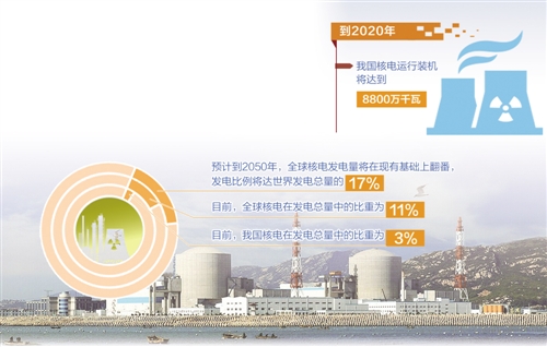 “到2020年,我國核電運行和在建裝機將達到8800萬千瓦。”國家原子能機構(gòu)副主任、國防科工局副局長王毅韌表示,發(fā)展新能源是實現(xiàn)未來可持續(xù)發(fā)展的必然趨勢,核電作為低碳能源,是新能源的重要組成部分,是我國未來能源可持續(xù)發(fā)展的重要基礎(chǔ)。據(jù)經(jīng)濟合作與發(fā)展組織和國際能源署聯(lián)合預(yù)測,到2050年,全球核電發(fā)電量將在現(xiàn)有基礎(chǔ)上翻番,發(fā)電比例將達世界發(fā)電總量的17%。但目前我國核電在發(fā)電總量中的比重還較低,僅占3%左右,遠低于全球11%的平均水平。因此,要在確保安全的前提下,高效發(fā)展核電。