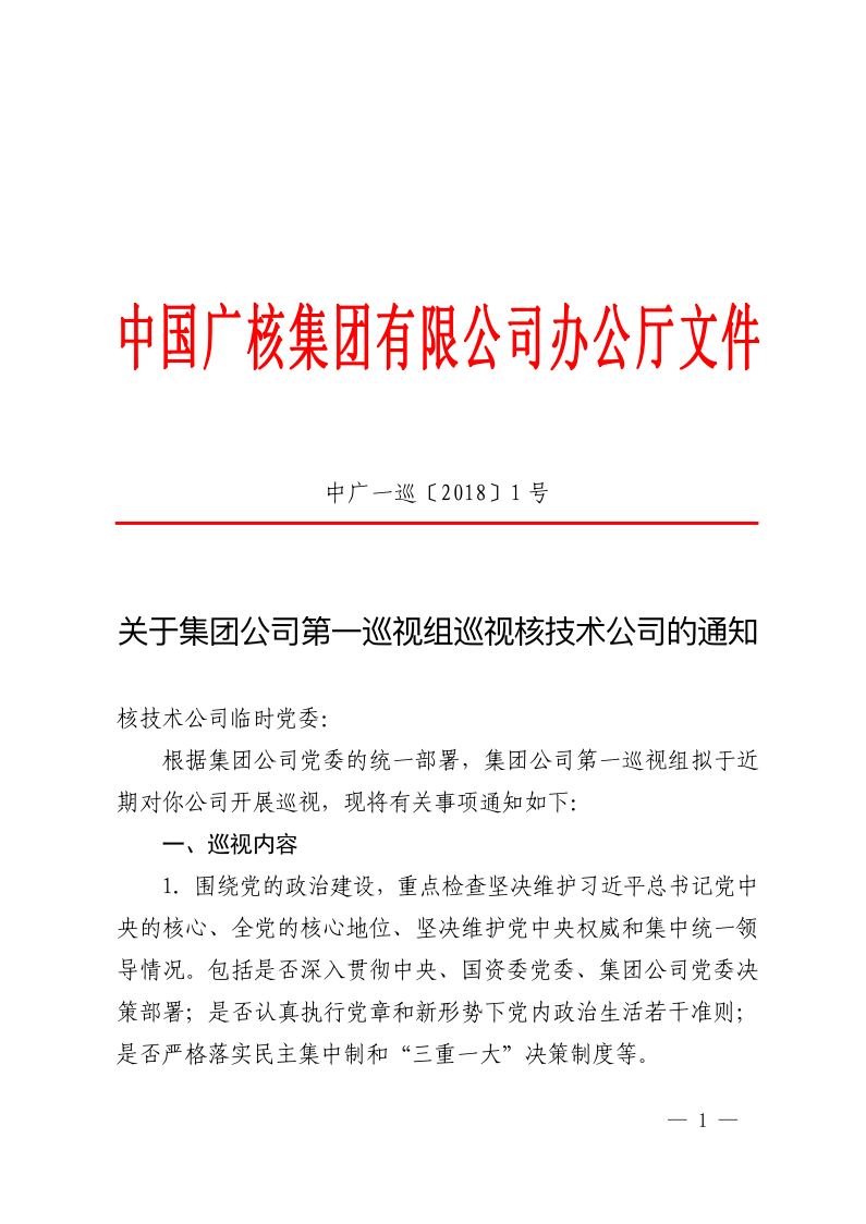 集團(tuán)公司第一巡視組對(duì)核技術(shù)公司開展巡視的公告